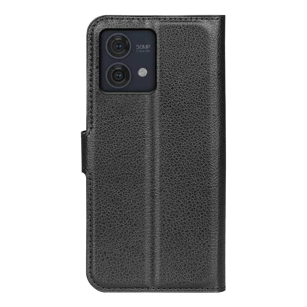 Fekete Litchi pénztárca tok Motorola Moto G84 5G számára