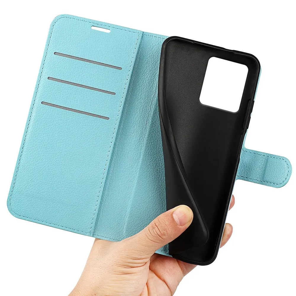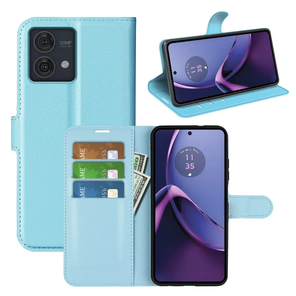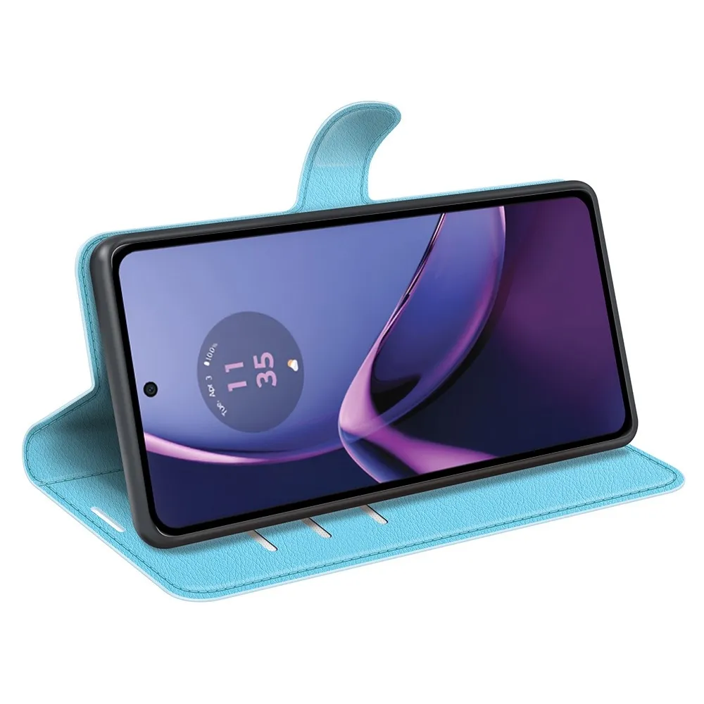 Kék Litchi pénztárca tok Motorola Moto G84 5G számára