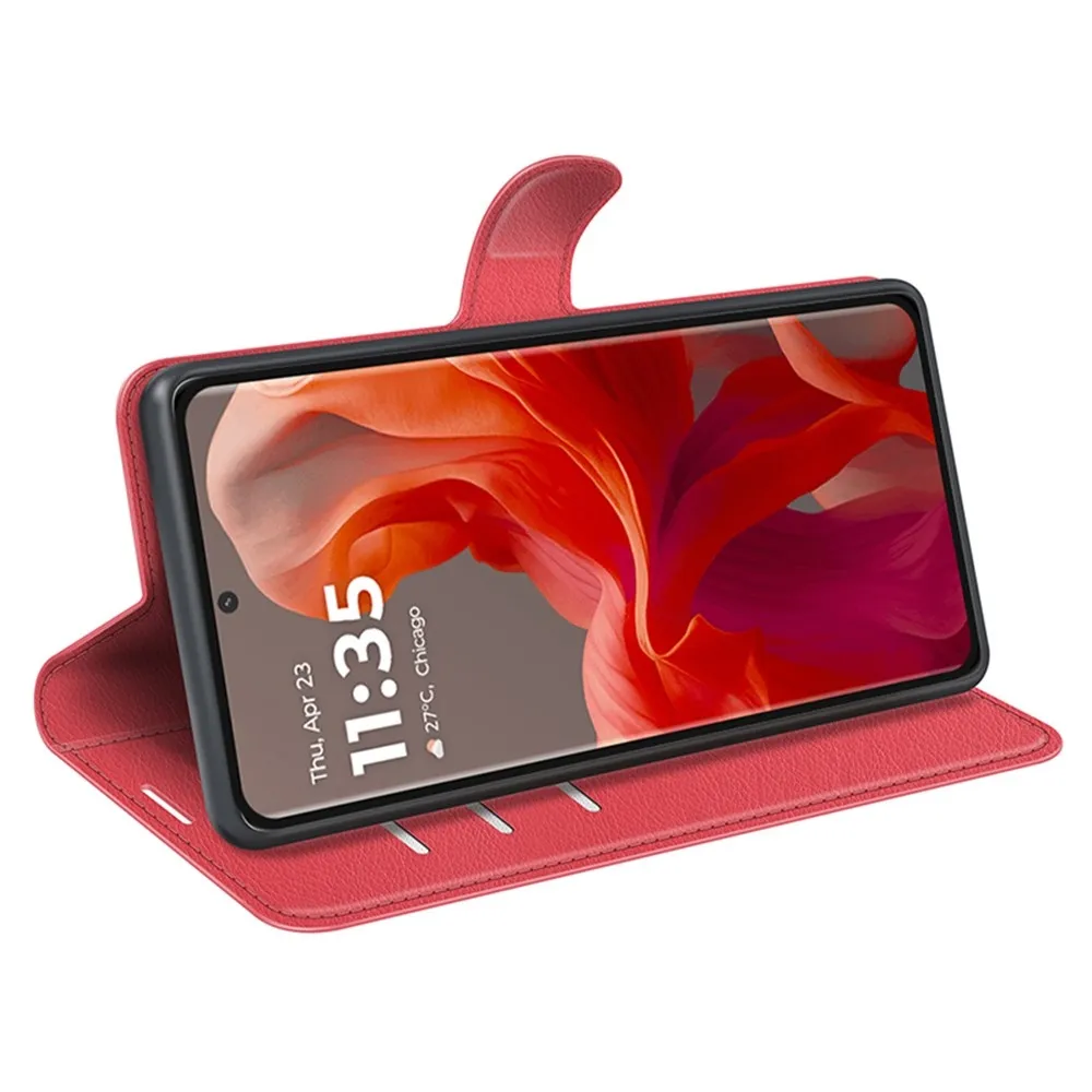 Piros Litchi pénztárca tok a Motorola Moto G85 5G-hez