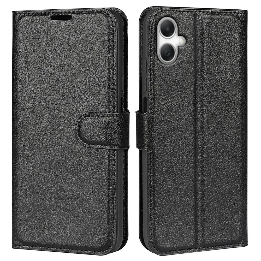Fekete Litchi pénztárca tok a Samsung Galaxy A07 4G-hez