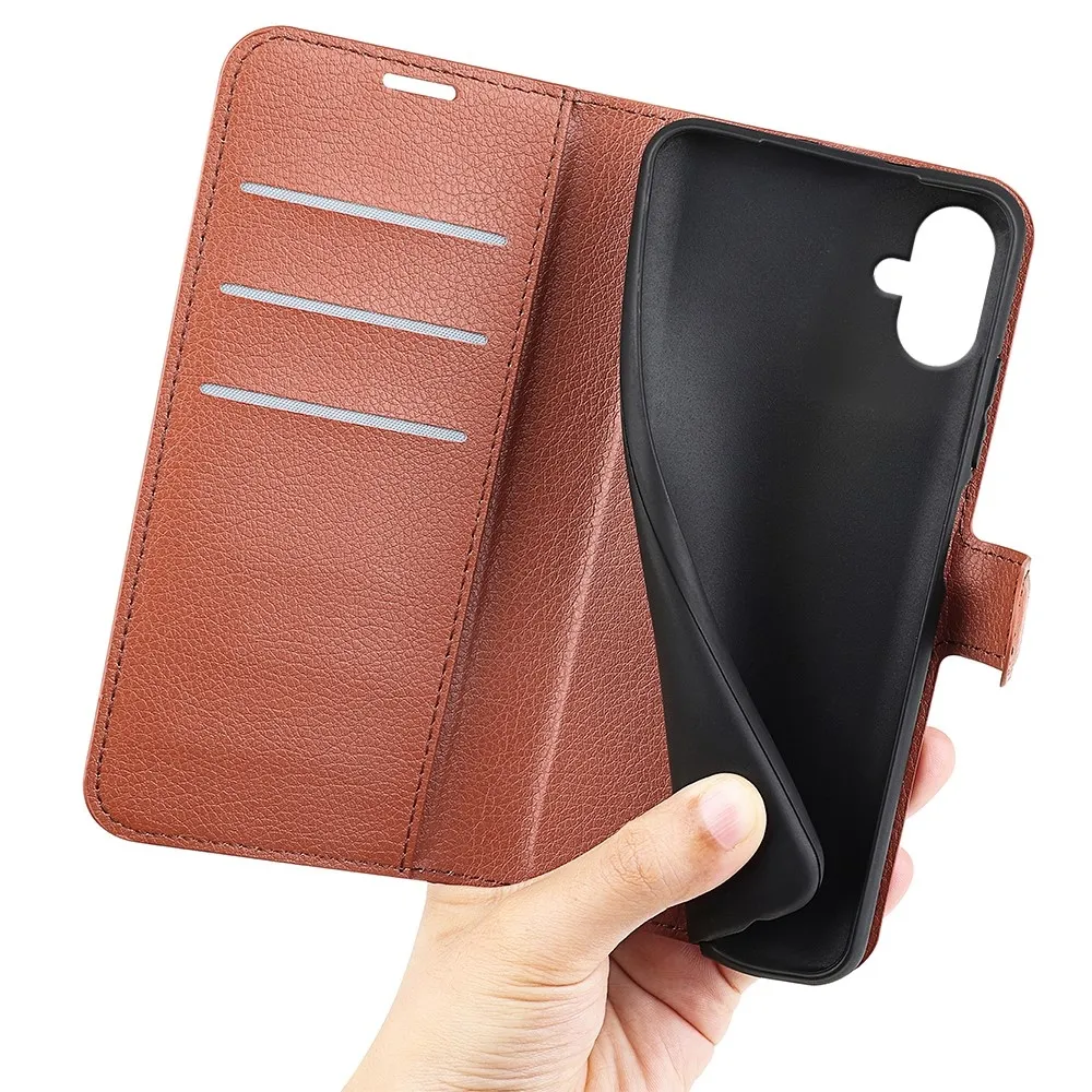 Barna Litchi pénztárca tok a Samsung Galaxy A07 4G számára