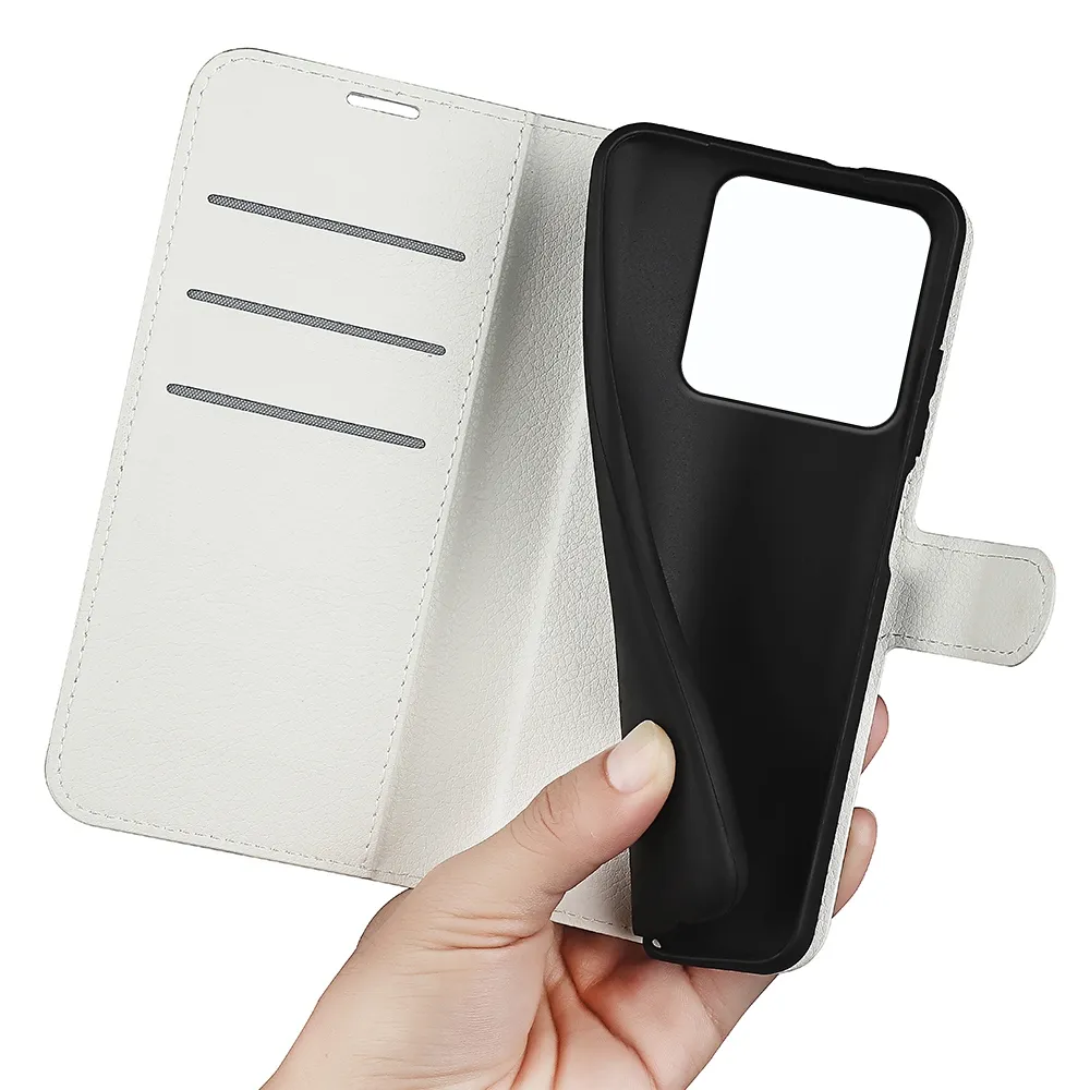 Fehér Litchi pénztárca tok Xiaomi 15T számára