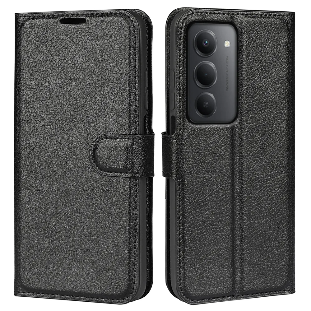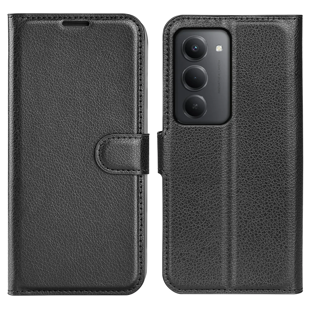 Fekete Litchi pénztárca tok a Xiaomi Redmi 15 4G/5G (171mm) számára