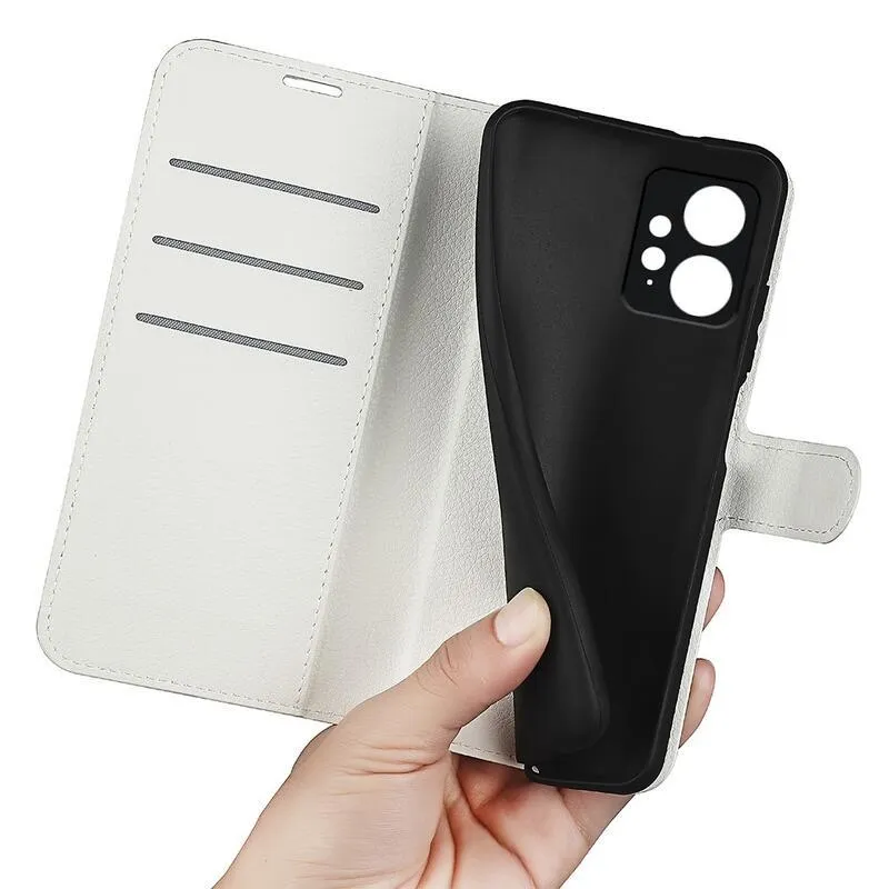 Litchi fehér pénztárca tok a Xiaomi Redmi Note 12 4G-hez