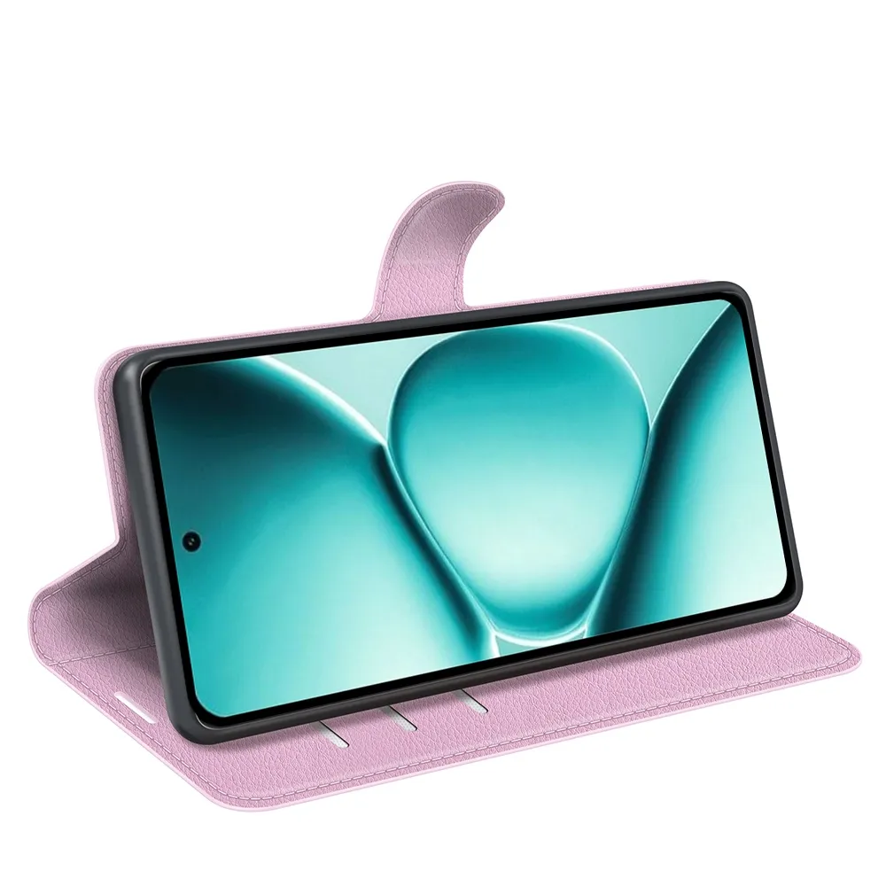 Rózsaszín Litchi pénztárca tok a Xiaomi Redmi Note 15 Pro+ 5G-hez