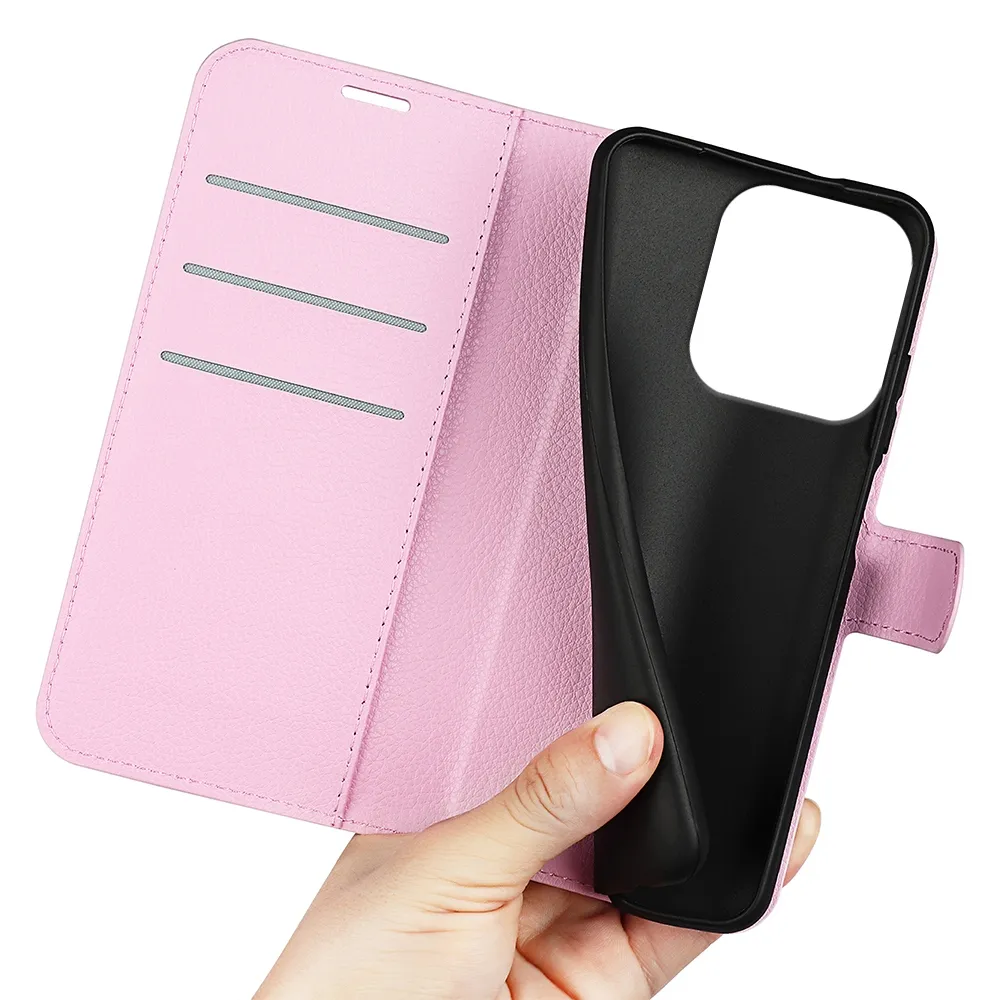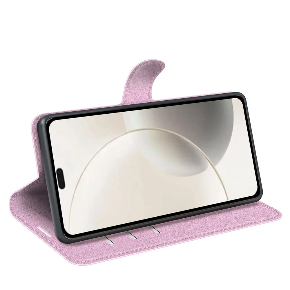 Rózsaszín Litchi pénztárca tok a Honor 400 Smart 5G/4G/Honor X7d számára