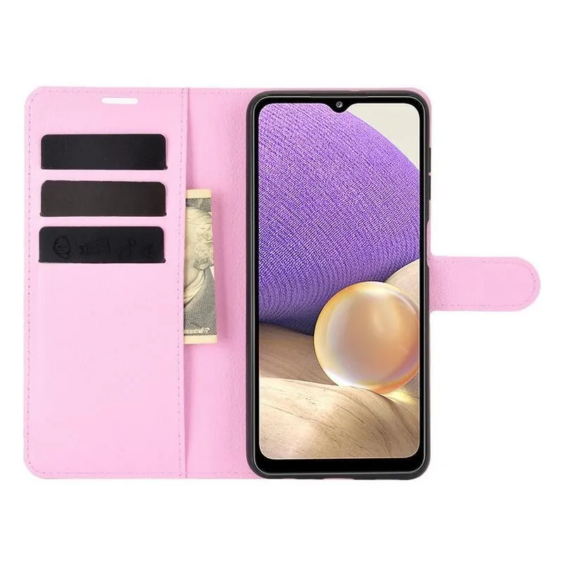 Litchi rózsaszín könyv tok Samsung Galaxy A32 5G-hez