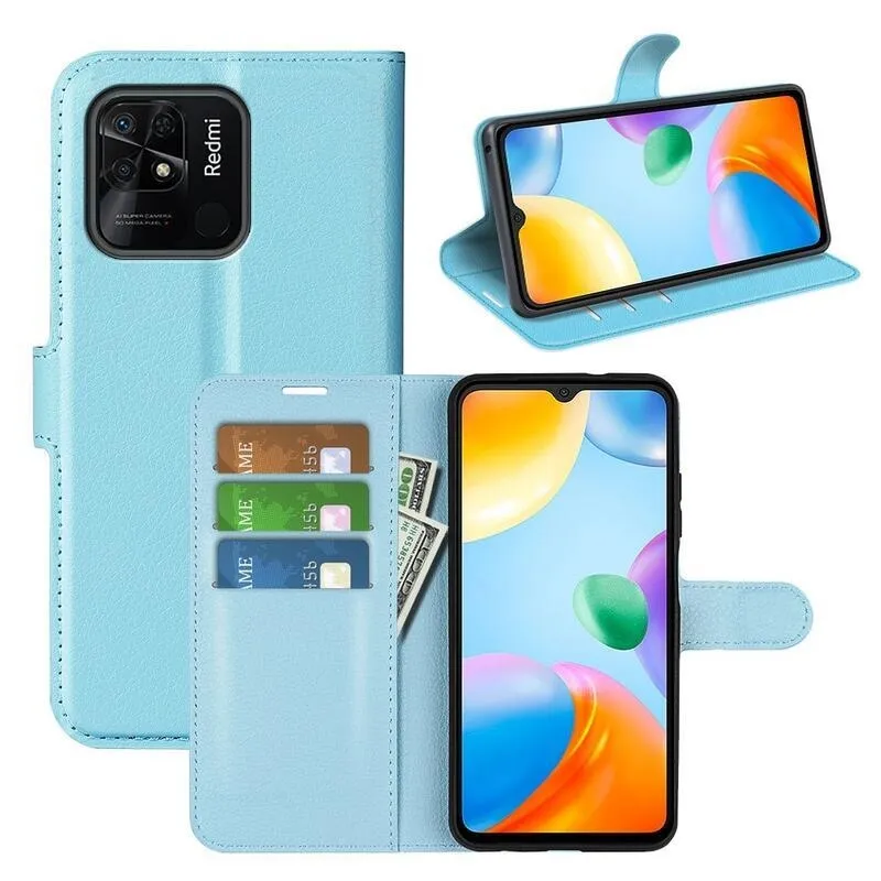Litchi PU bőr pénztárca tok Xiaomi Redmi 10C-hez - kék