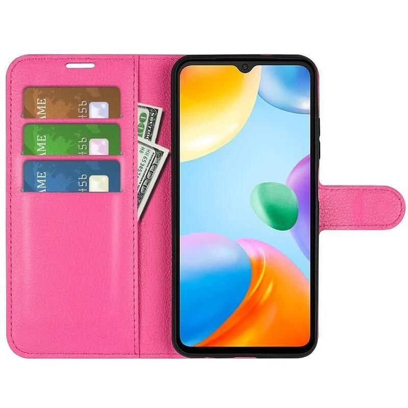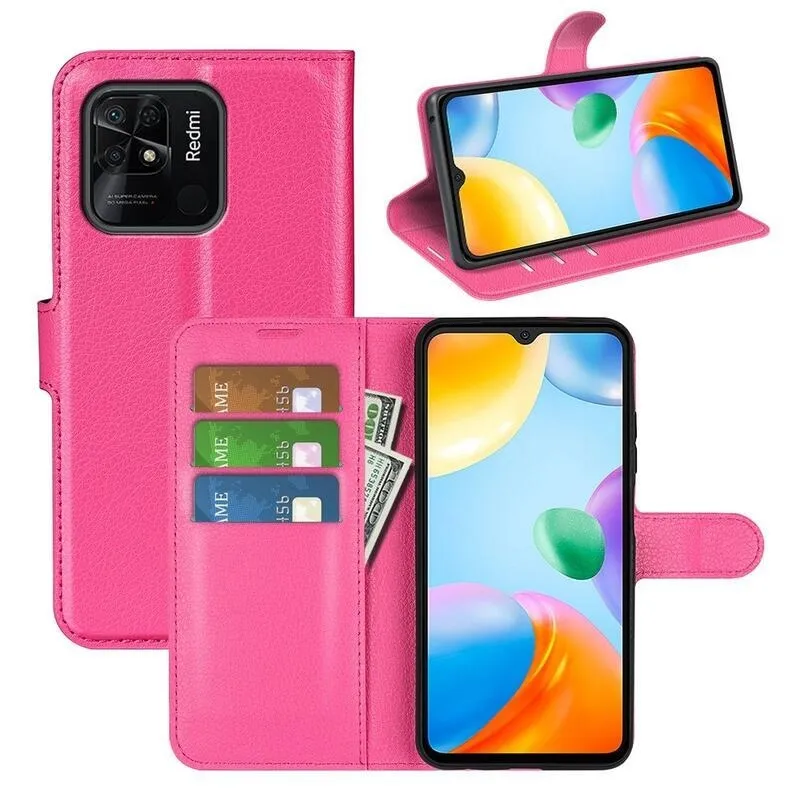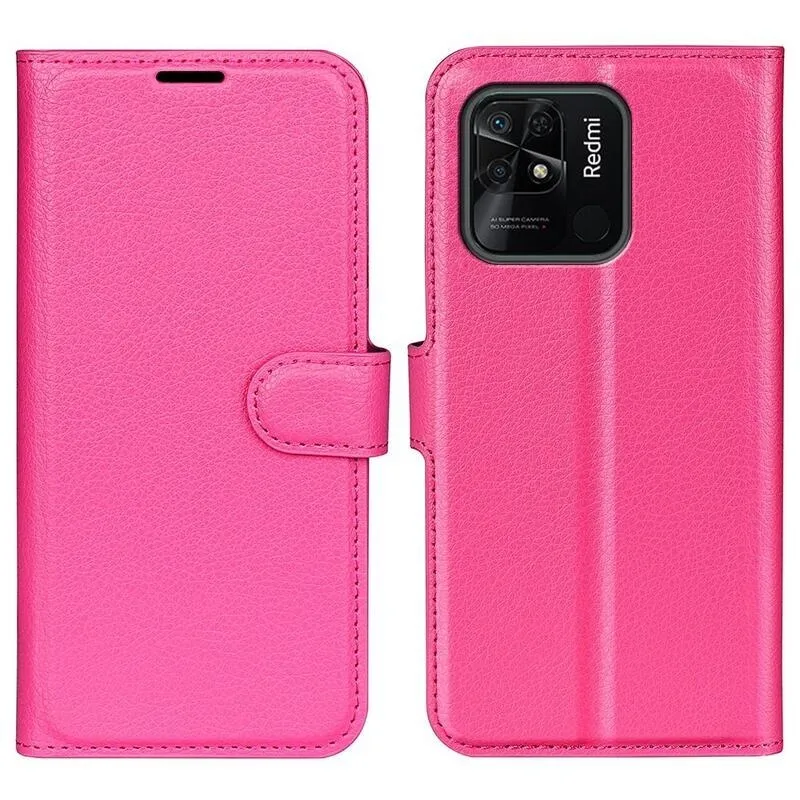 Litchi PU bőr pénztárca tok Xiaomi Redmi 10C - rózsa