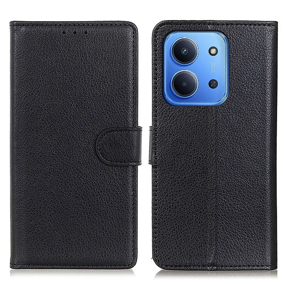 Fekete Litchie pénztárca tok Xiaomi Redmi 15C 4G (171mm)/Poco C85 4G (171mm) számára