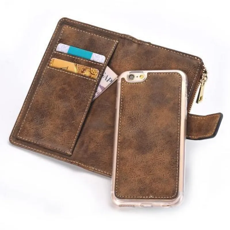 Matt 2in1 pénztárca tok levehető tartozékkal iPhone 6s Plus és 6 Plus készülékhez - sötétbarna színben