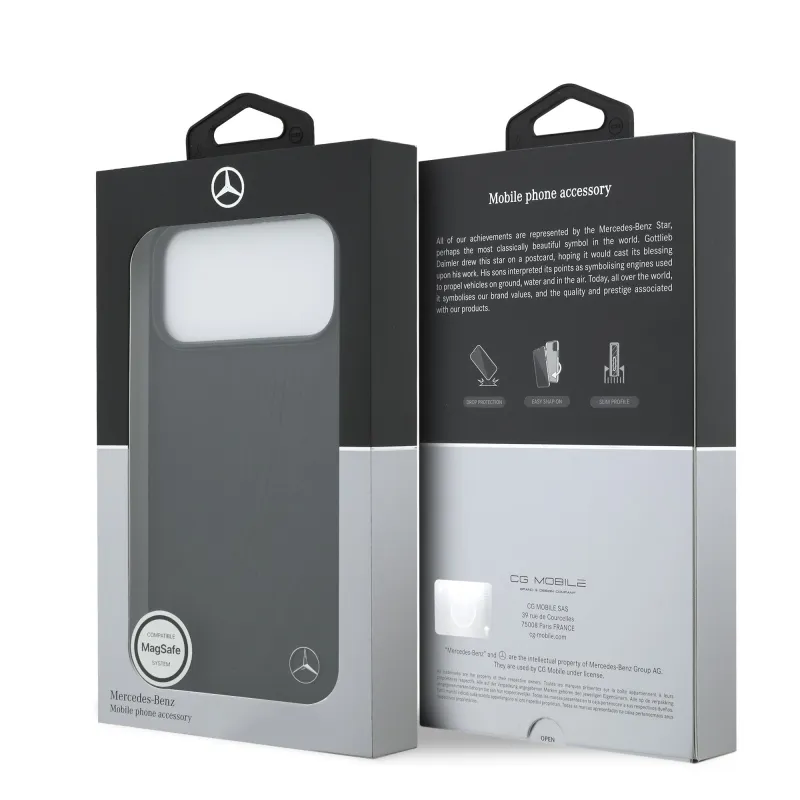 Mercedes Bőr nagy Lauer Levelek MagSafe hátlap iPhone 17 Pro Max-hoz Fekete