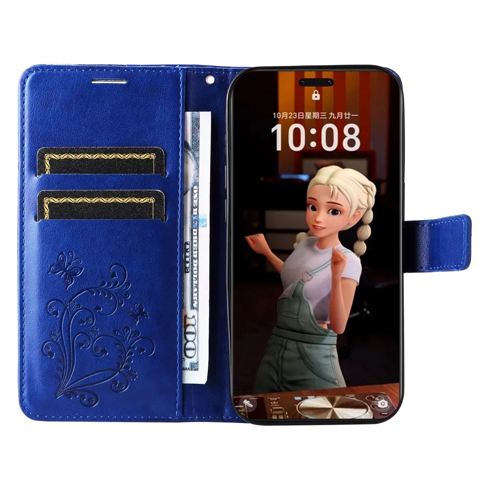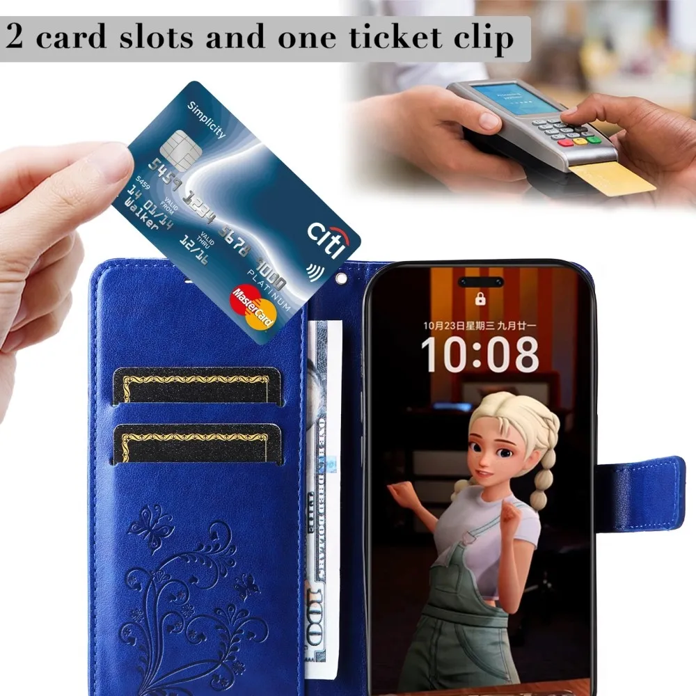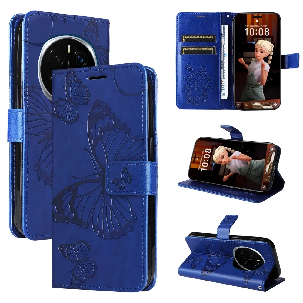 Kék pénztárca tok Big Butterfly a Honor Magic 7 Pro 5G számára