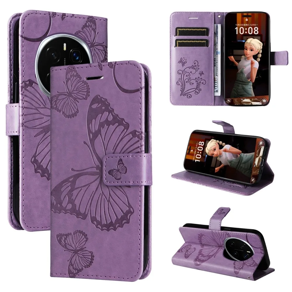 Nagy pillangó könyv tok a Honor Magic 7 Pro 5G számára - lila