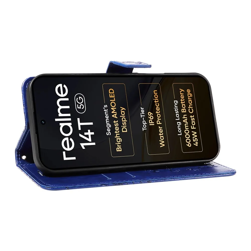 Nagy pillangó könyvtáska a Realme 14 5G/14T 5G számára - kék