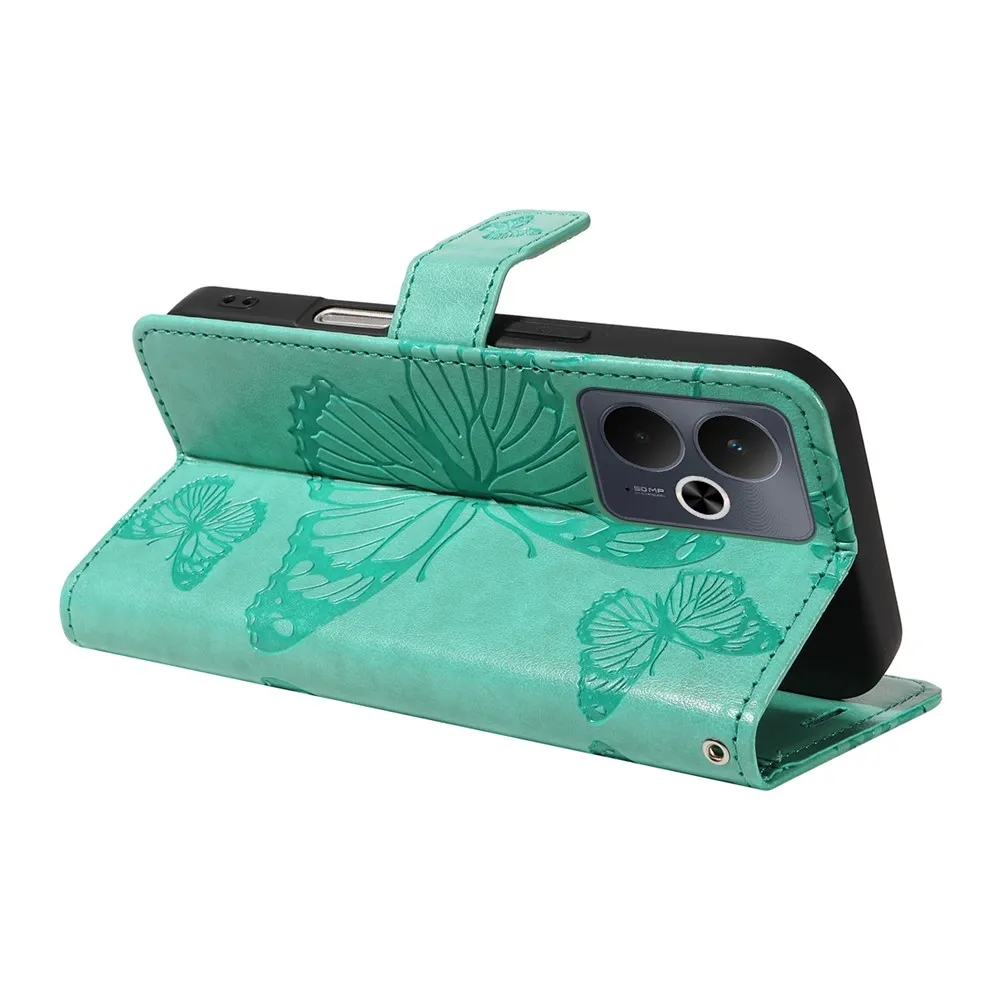 Kék-zöld pénztárca tok Big Butterfly a Realme 14 5G/14T 5G mobiltelefonhoz