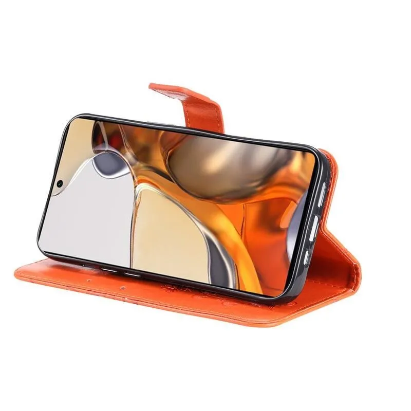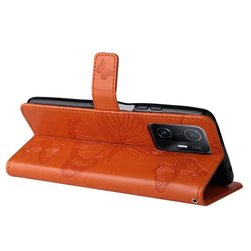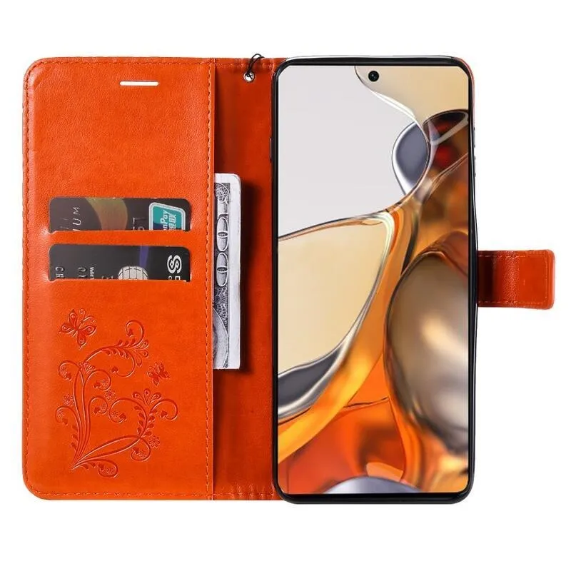 Nagy pillangó narancssárga könyv tok a Xiaomi 11T/11T Pro számára