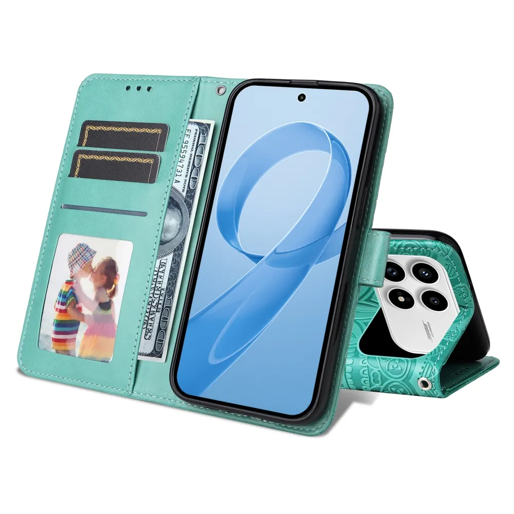 Kék-zöld pénztárca tok Napraforgó a Xiaomi Poco F8 Pro 5G számára