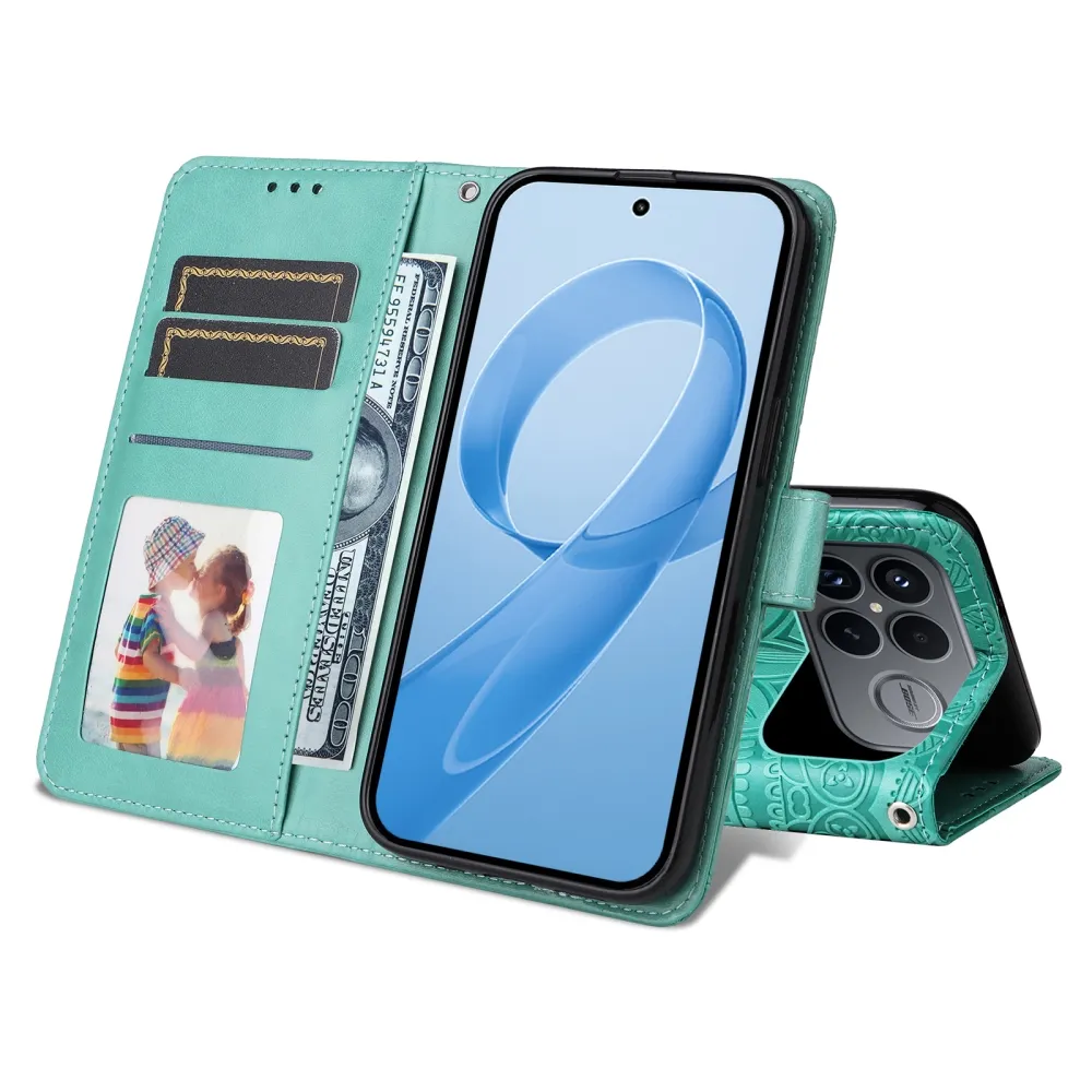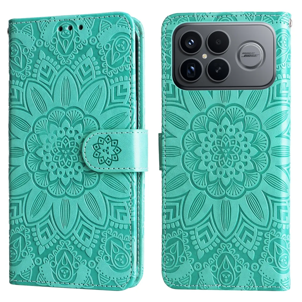 Kék-zöld pénztárca tok Napraforgó Xiaomi Poco F8 Ultra 5G számára