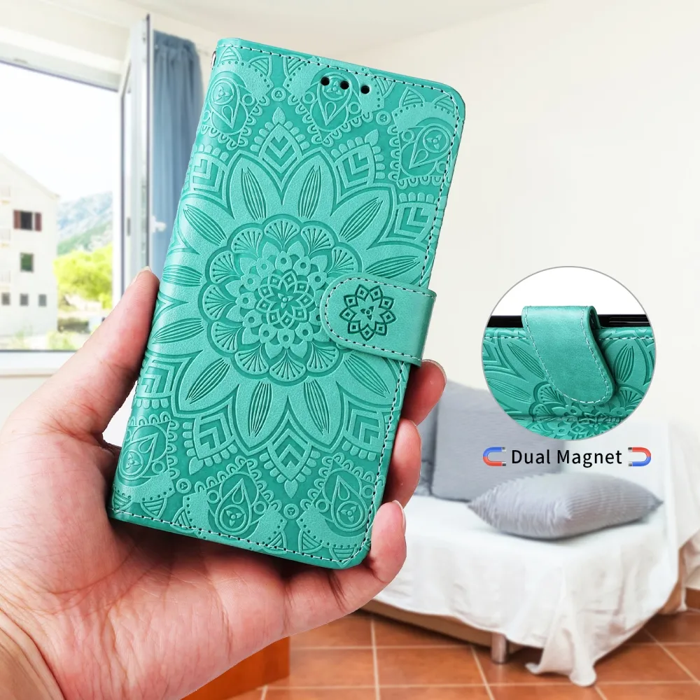 A mobiltelefonokhoz való pénztárca- vagy könyvtokok teljes védelmet nyújtanak a készüléknek. Ez a Napraforgó modell ízléses dizájnt is kínál.