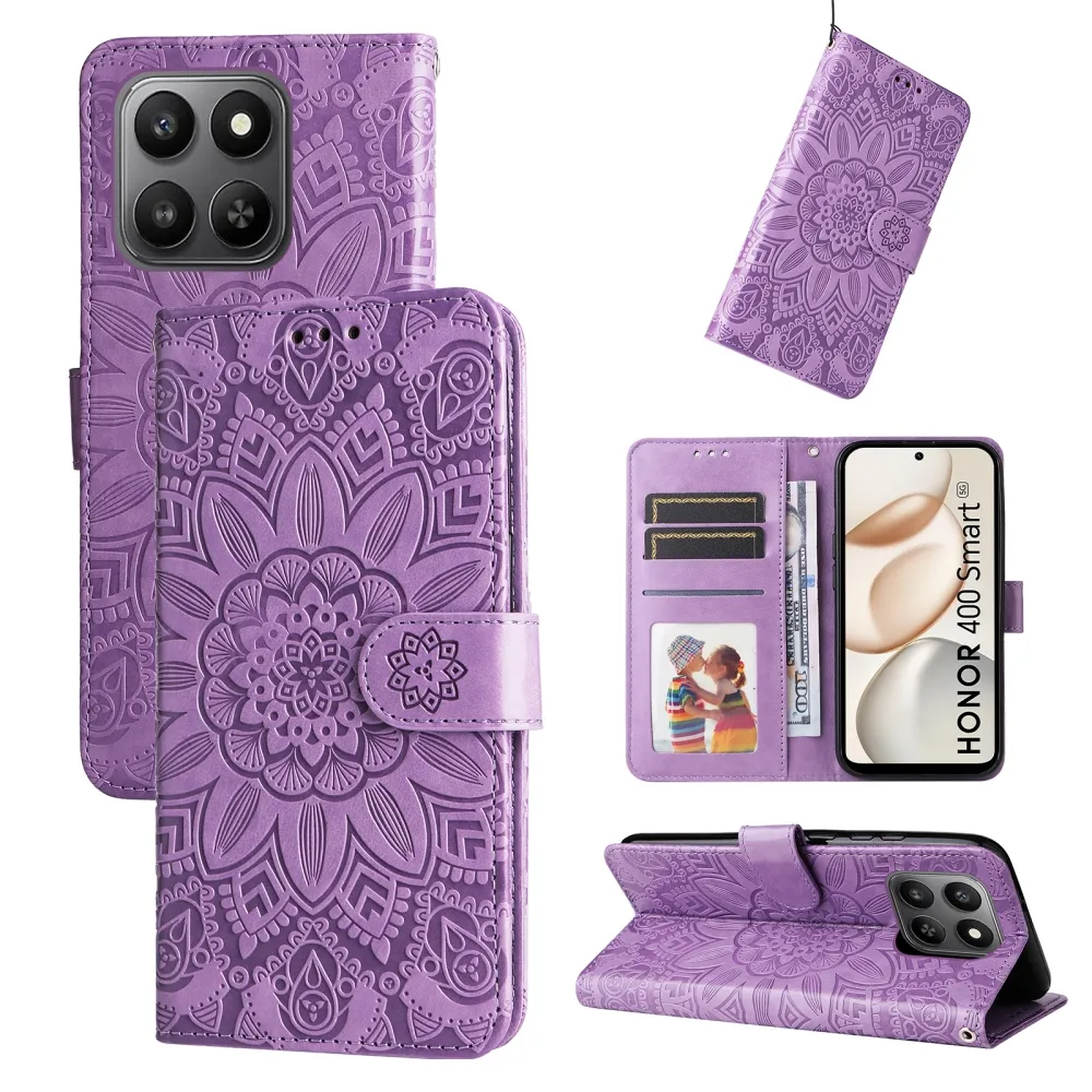 Napraforgó könyvtáska a Honor 400 Smart 5G/4G/Honor X7d készülékhez - lila