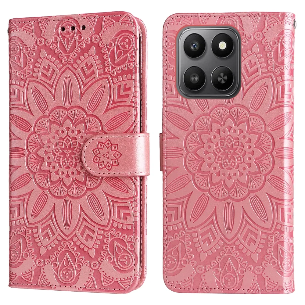 Rózsaszín napraforgó pénztárca tok a Honor 400 Smart 5G/4G/Honor X7d számára