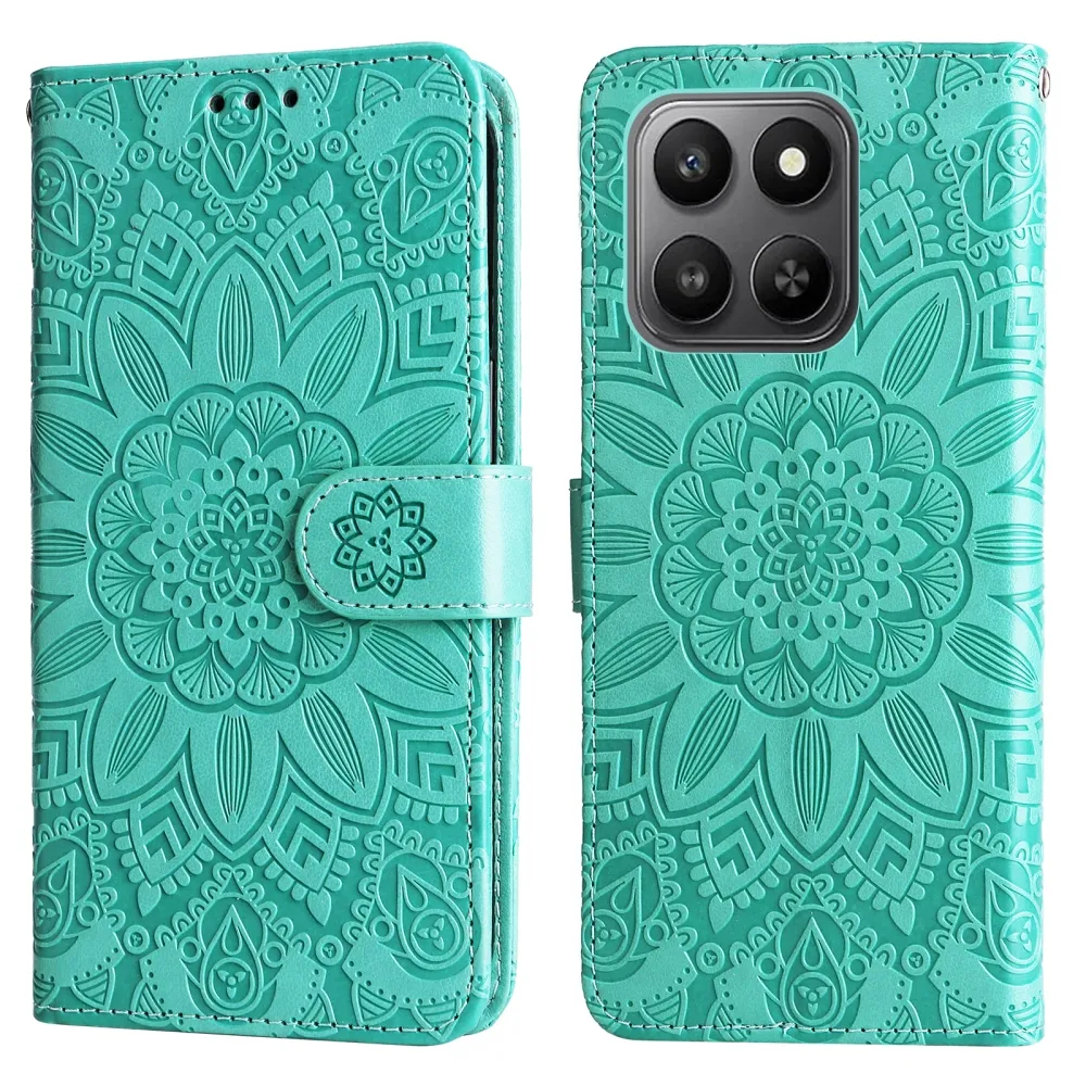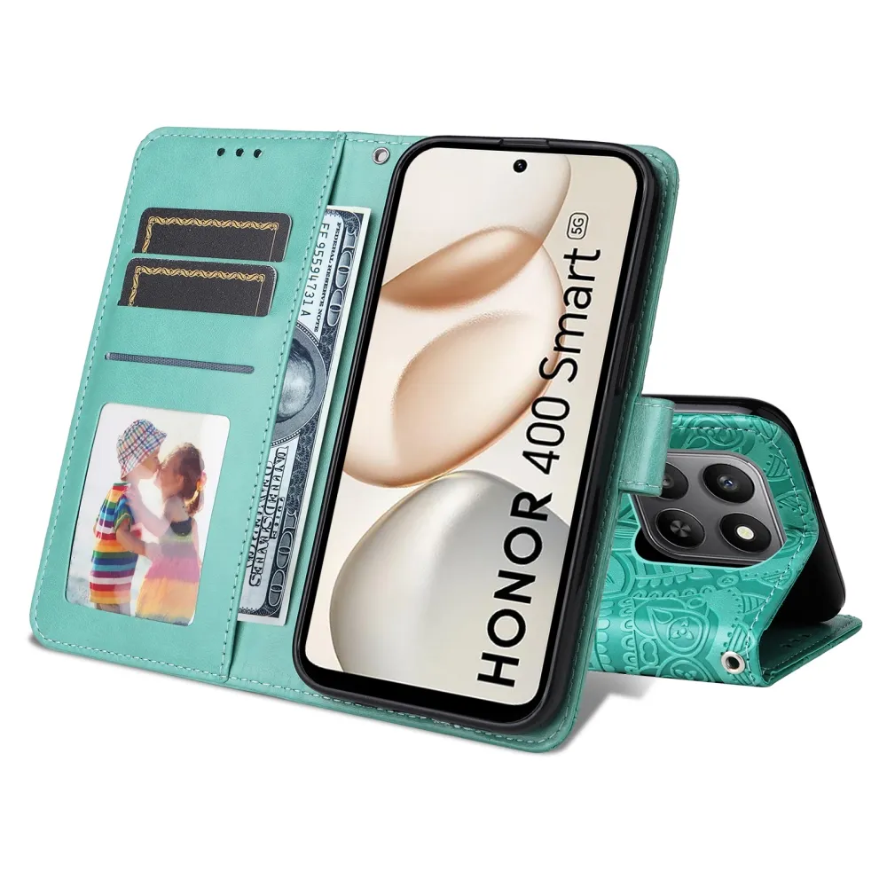 Kék-zöld napraforgó pénztárca tok a Honor 400 Smart 5G/4G/Honor X7d számára