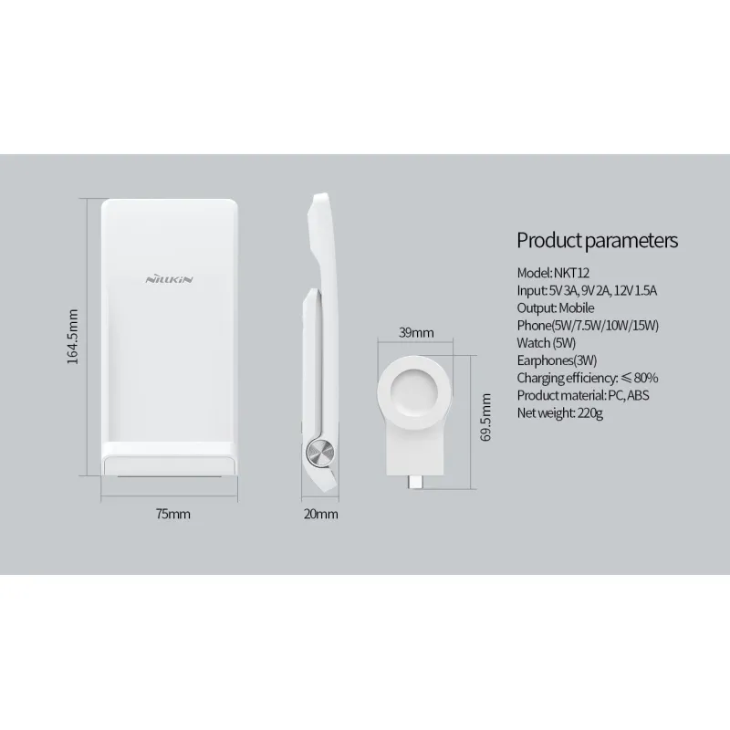 Nillkin PowerTrio 3in1 vezeték nélküli töltő a Huawei Watch-hoz Fehér