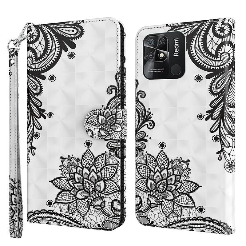 Nyomtatás pénztárca tok Xiaomi Redmi 10C - csipke virág