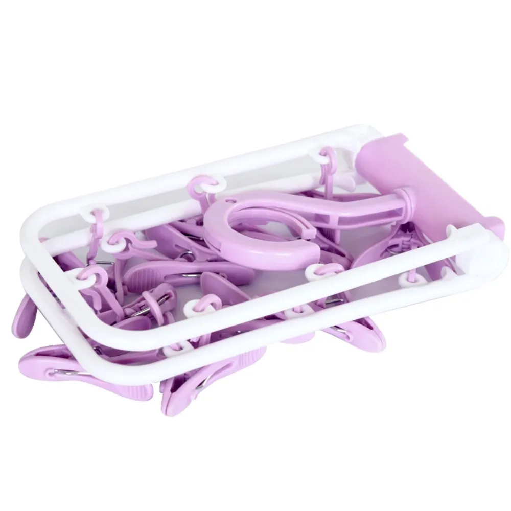 Lila összecsukható műanyag zokniszárító 12 fogóval