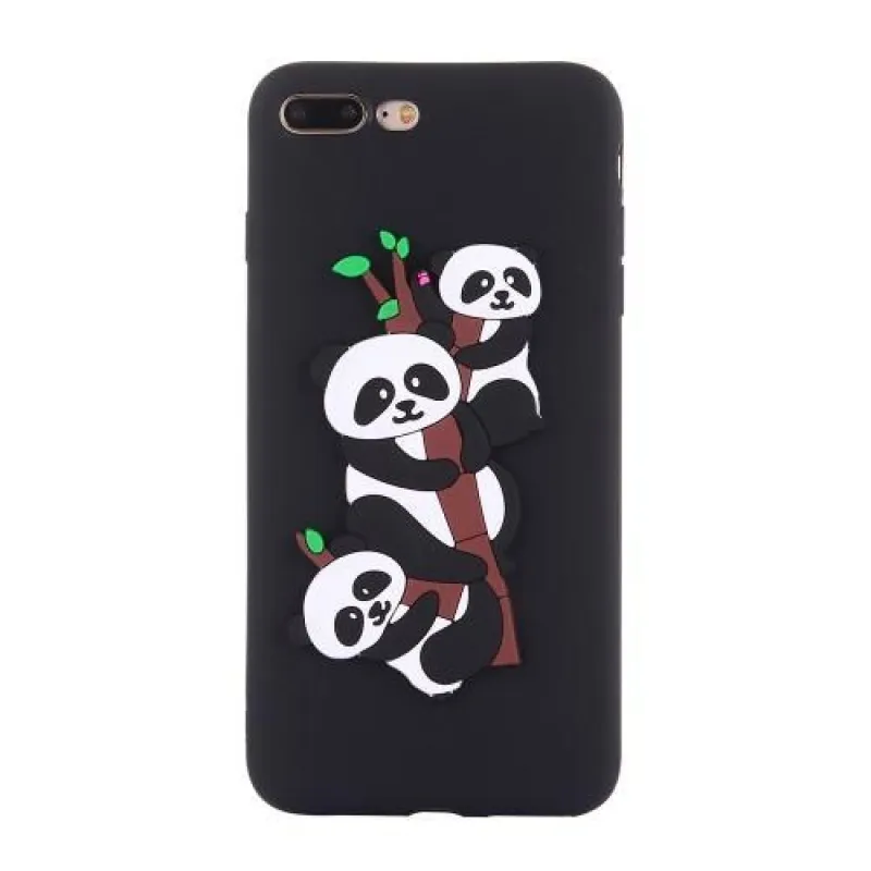 Panda 3D szilikon tok iPhone 7 Plus és iPhone 8 Plus készülékhez - fekete