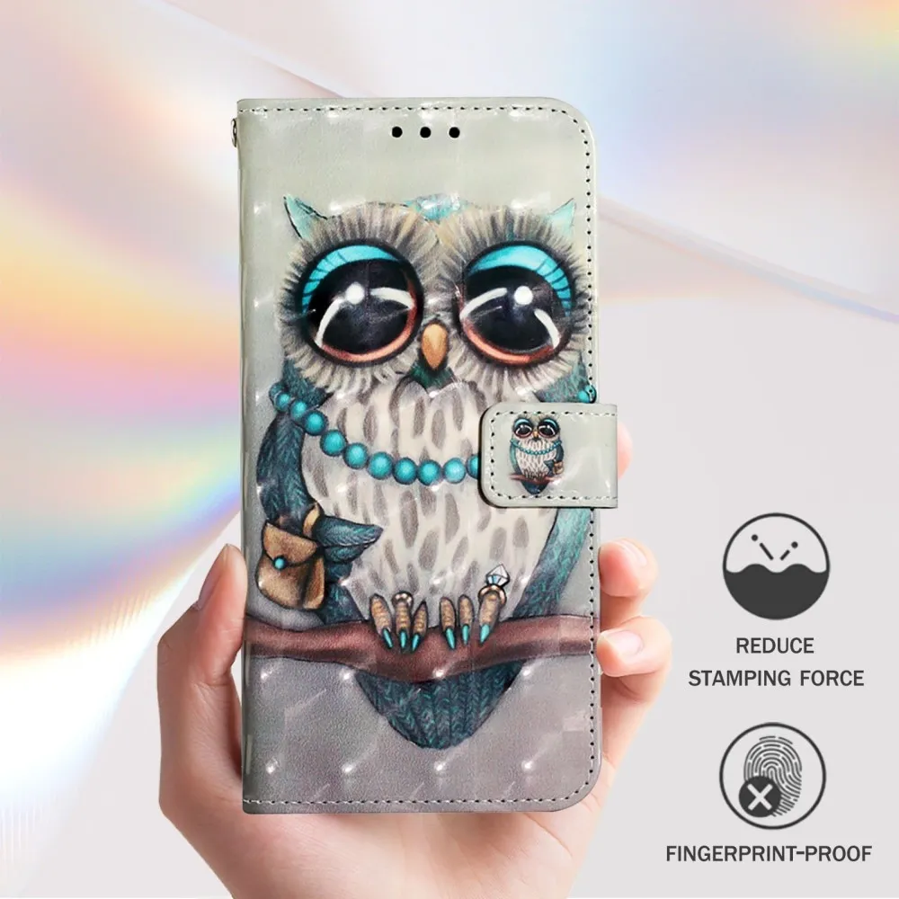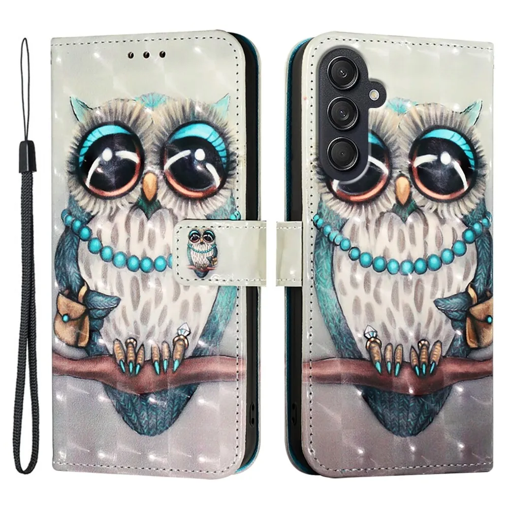 Tárca tok Patte a Samsung Galaxy M55 5G számára bagoly motívummal
