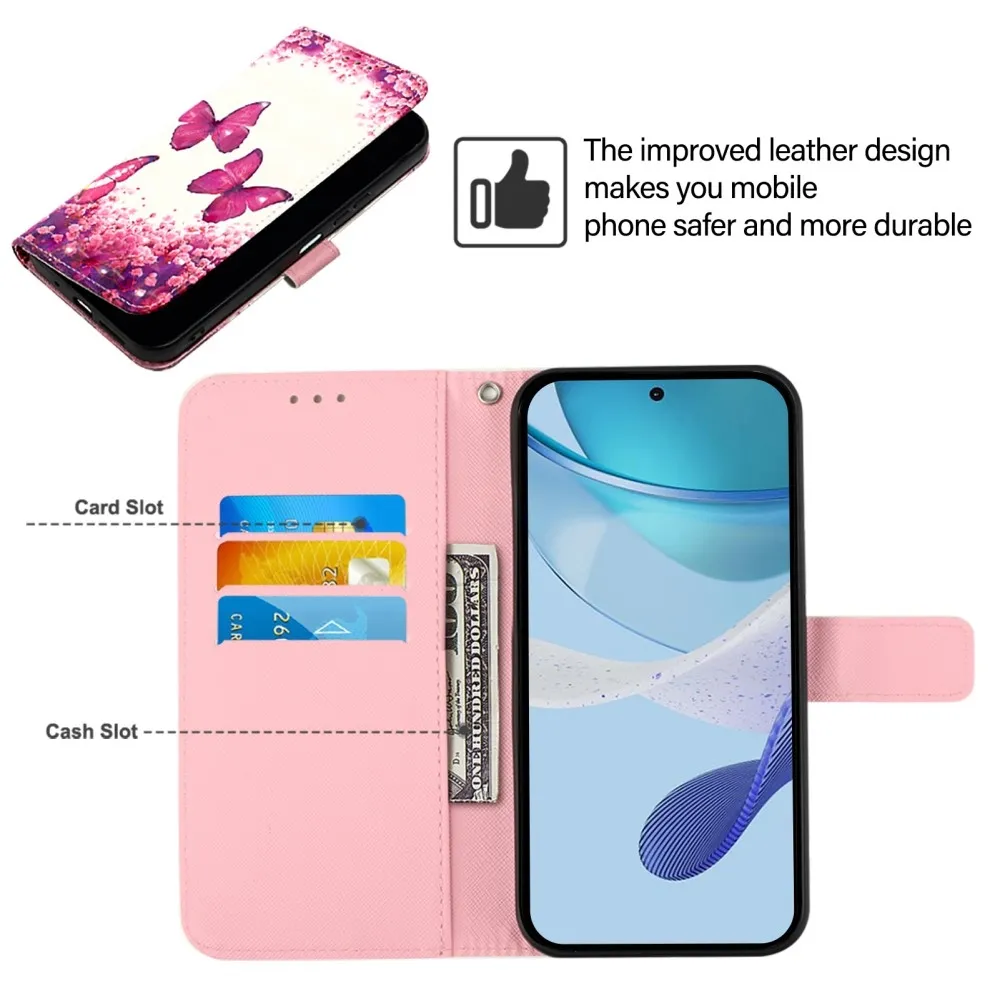 Tárca tok Patte a Samsung Galaxy M55 5G számára rózsaszín pillangókkal