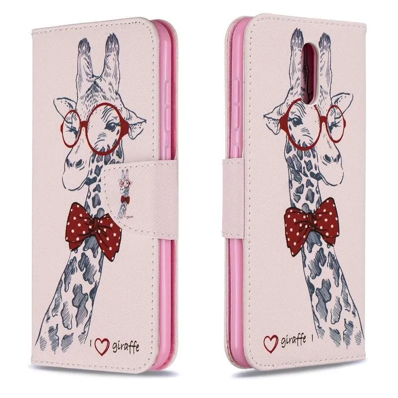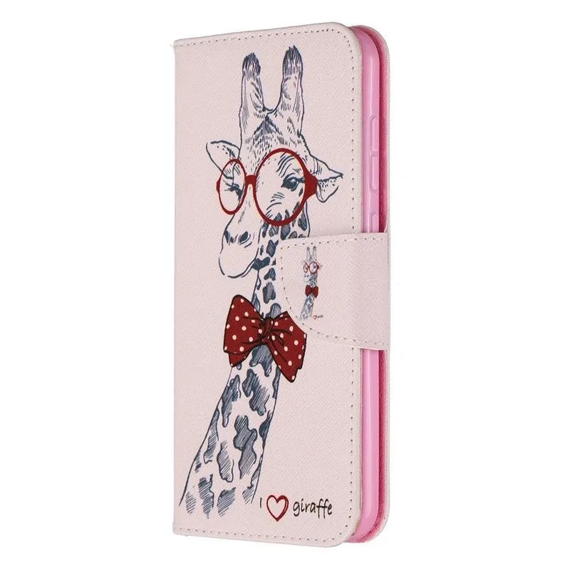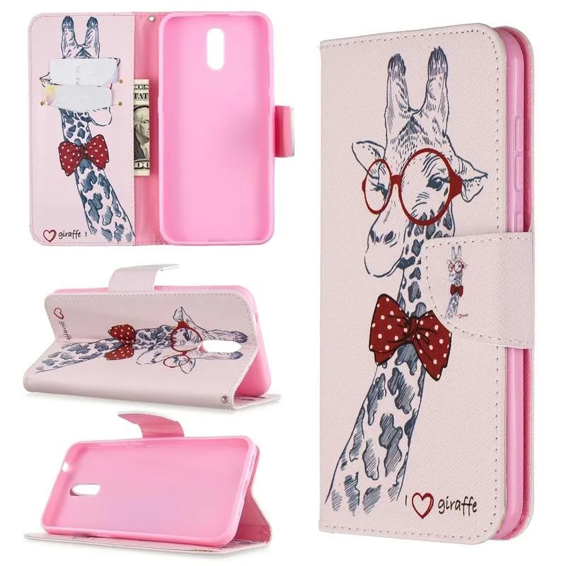 Patte PU bőr pénztárca tok Nokia 2.3 mobiltelefonhoz - zsiráf szemüveggel