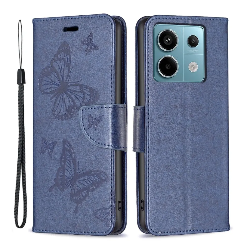 Kék pénztárca tok Butterfly Xiaomi Redmi Note 13 Pro 5G/Poco X6 5G számára
