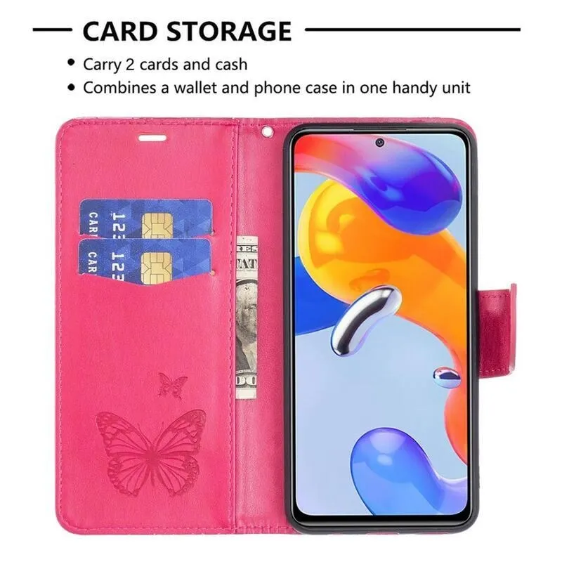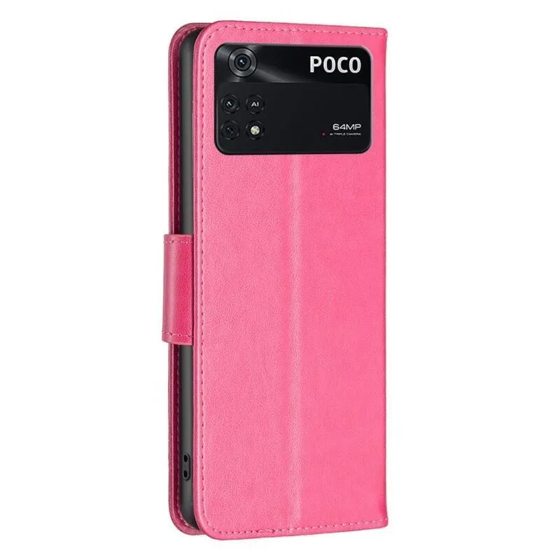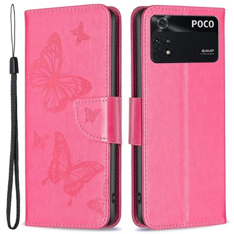Pillangó PU bőr pénztárca tok Xiaomi Poco M4 Pro 4G - rózsaszínű