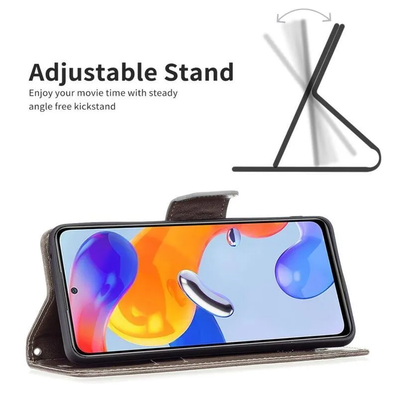 Pillangó PU bőr pénztárca tok Xiaomi Redmi 10C-hez - szürke