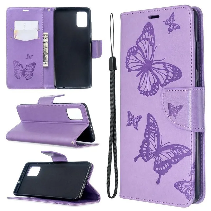 Pillangó PU bőr tok Samsung Galaxy A51 készülékhez - lila