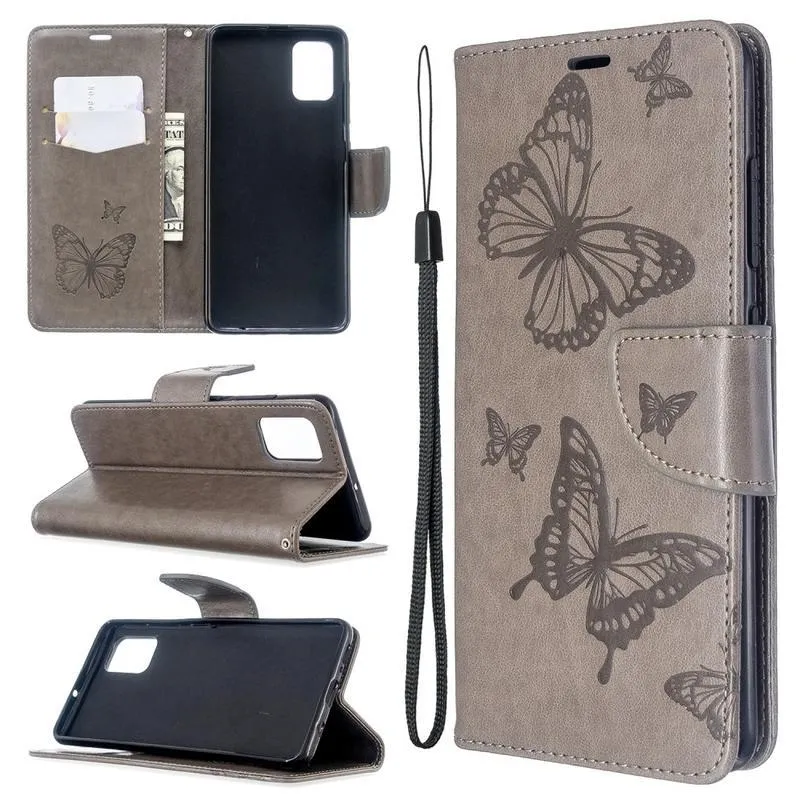 Pillangó PU bőr tok Samsung Galaxy A51 készülékhez - szürke