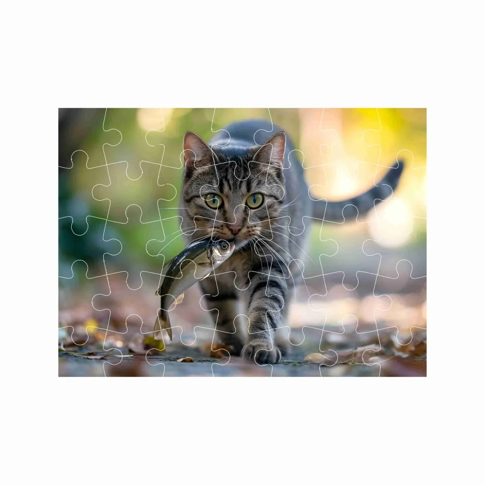 Kiváló minőségű puzzle 27x19,5cm (35 darab) és egy macska és egy hal képe