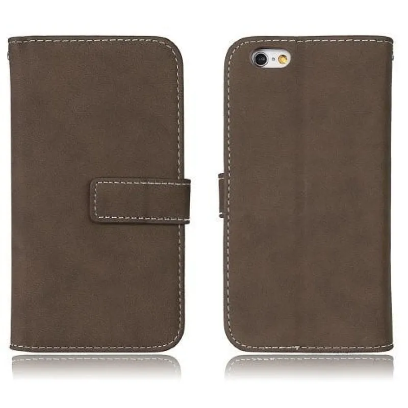 Réses PU bőr könyvtáska rekeszekkel iPhone 6 Plus és 6s Plus készülékhez - barna színben
