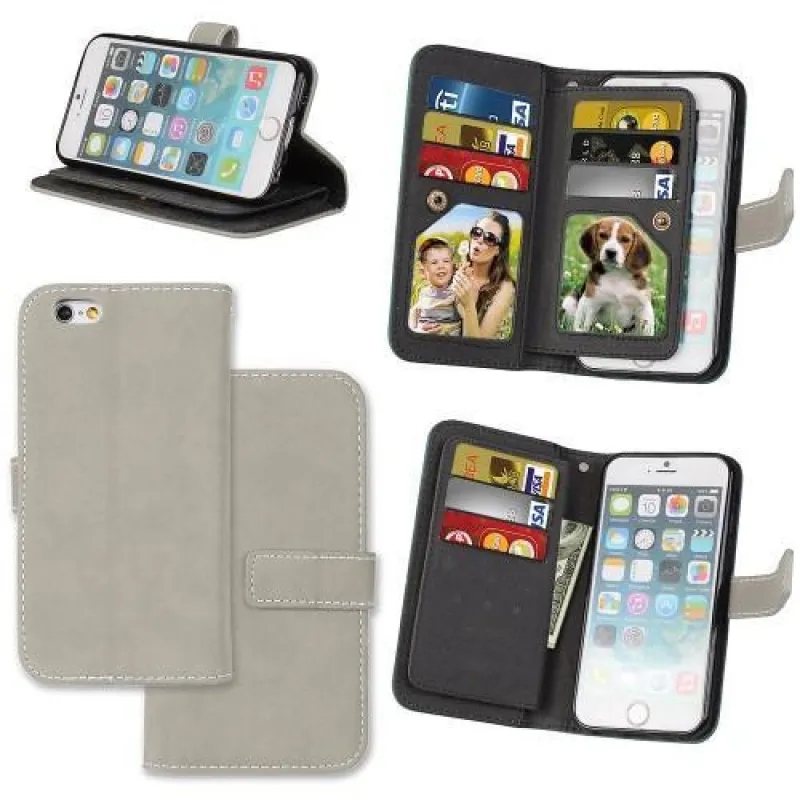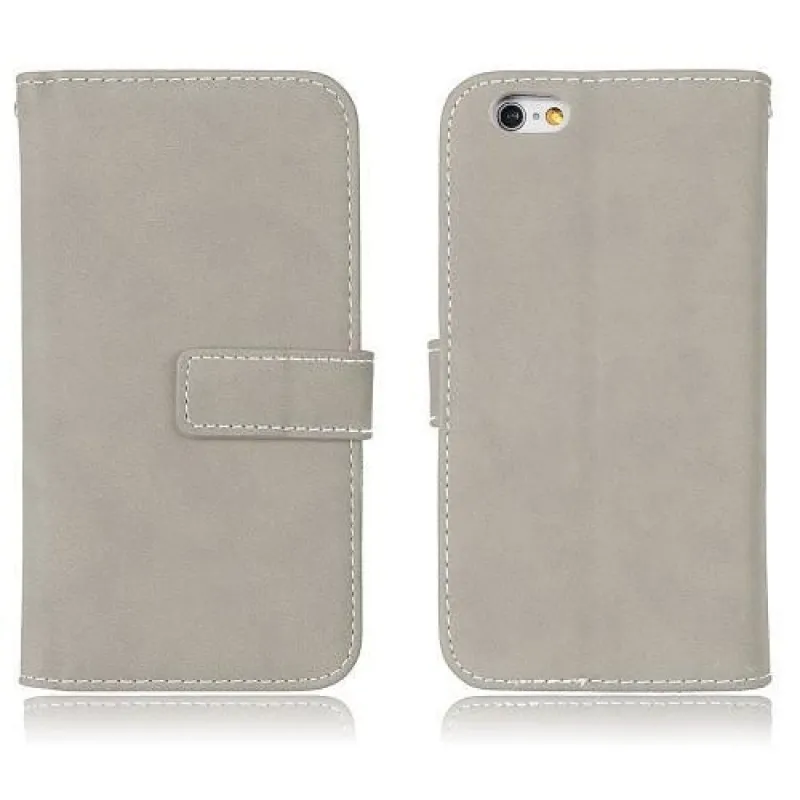 Réses PU bőr könyvtáska rekeszekkel iPhone 6 Plus és 6s Plus készülékhez - szürke