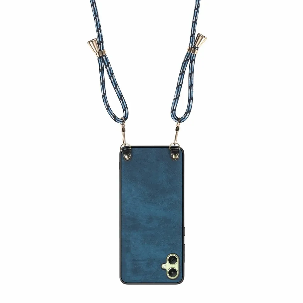 Retro zselés tok zsinórral és műbőrrel Samsung Galaxy A06 4G készülékhez - kék