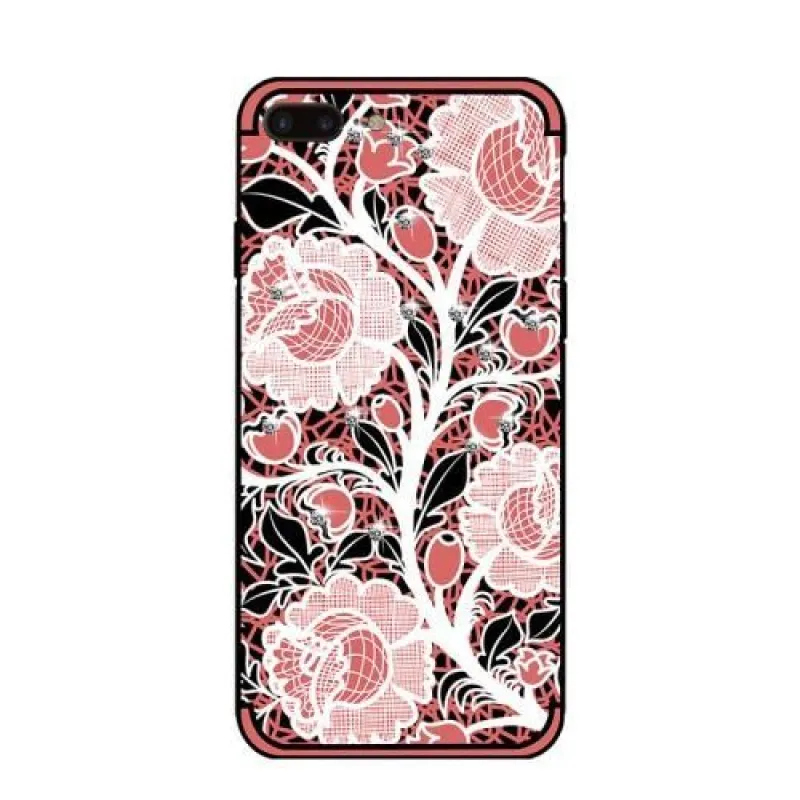 Rózsák zselés tok kristályokkal iPhone 7 Plus és iPhone 8 Plus készülékhez - rózsaszín