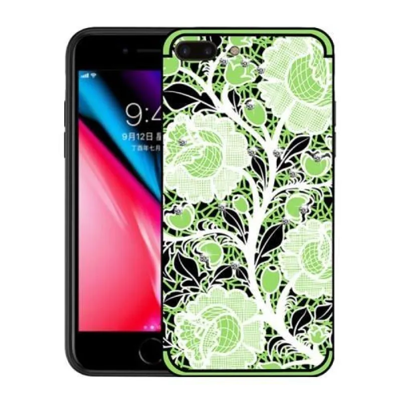 Rózsák zselés tok kristályokkal iPhone 7 Plus és iPhone 8 Plus készülékhez - zöld