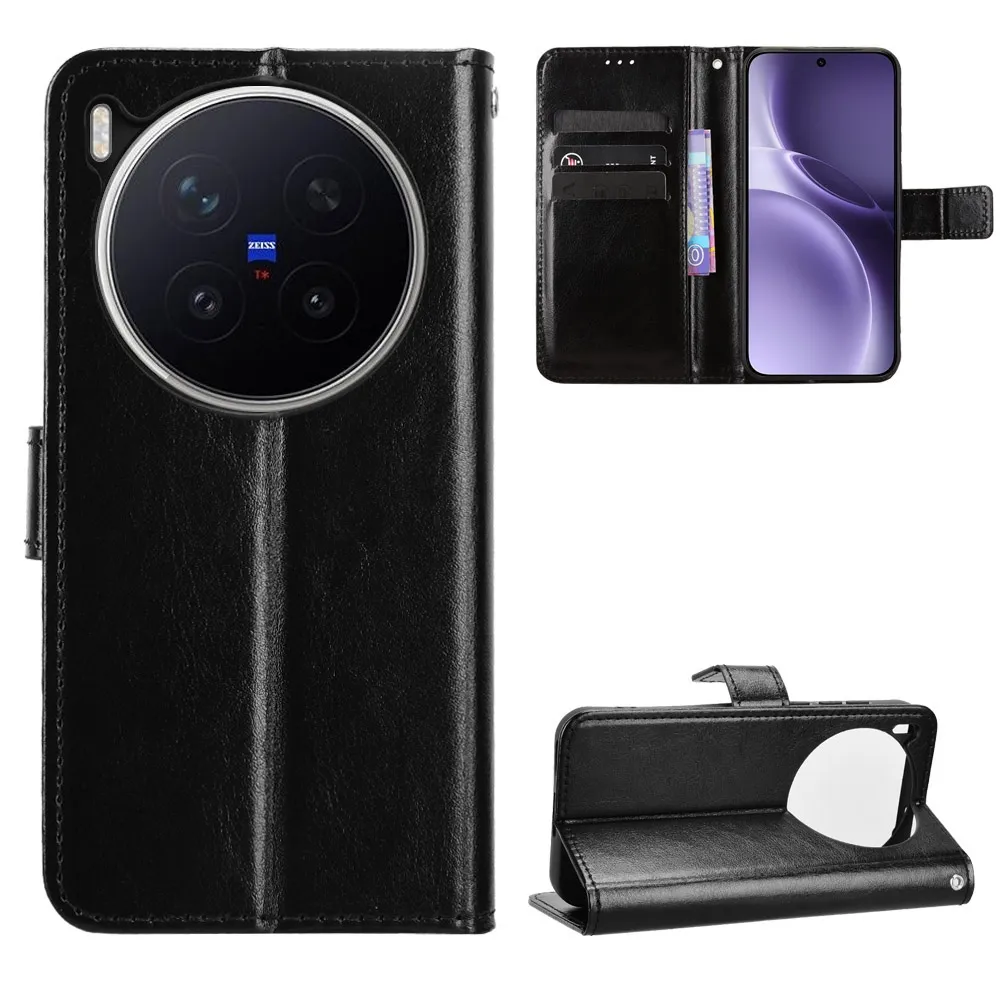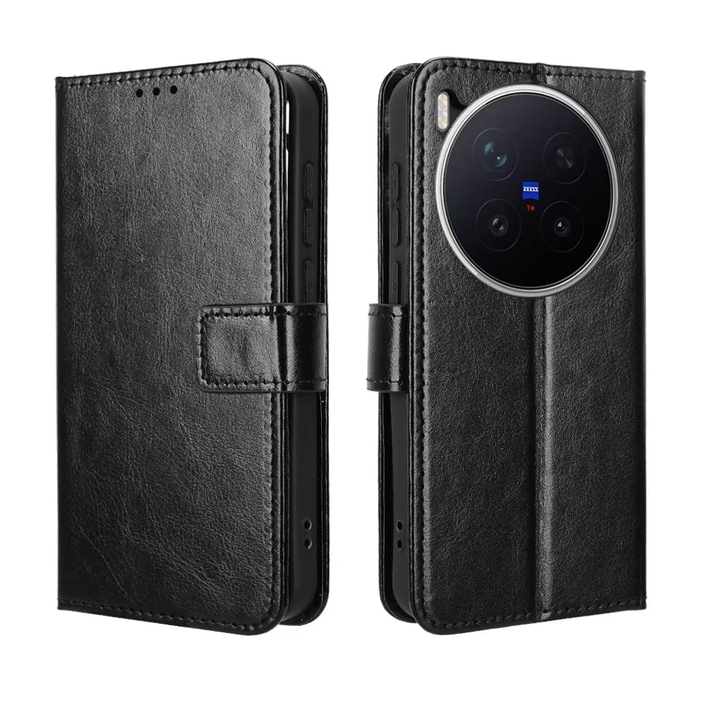 Fekete Crazy pénztárca tok Vivo X300 Pro 5G-hez