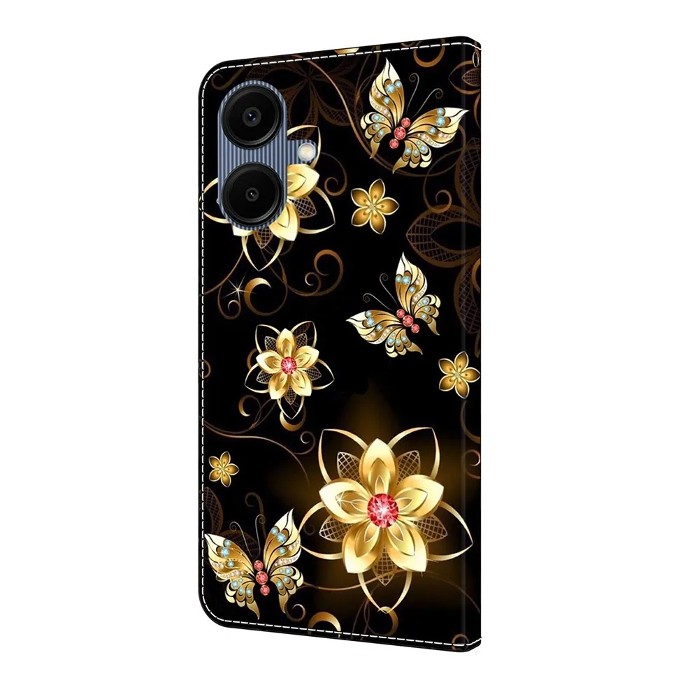 Tárca tok Sima Samsung Galaxy A07 4G és arany pillangók és virágok számára