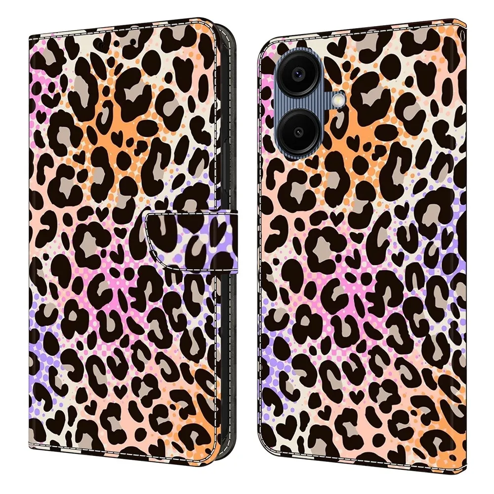 Tárca tok Sima Samsung Galaxy A07 4G és leopárd mintás Samsung Galaxy A07 4G számára