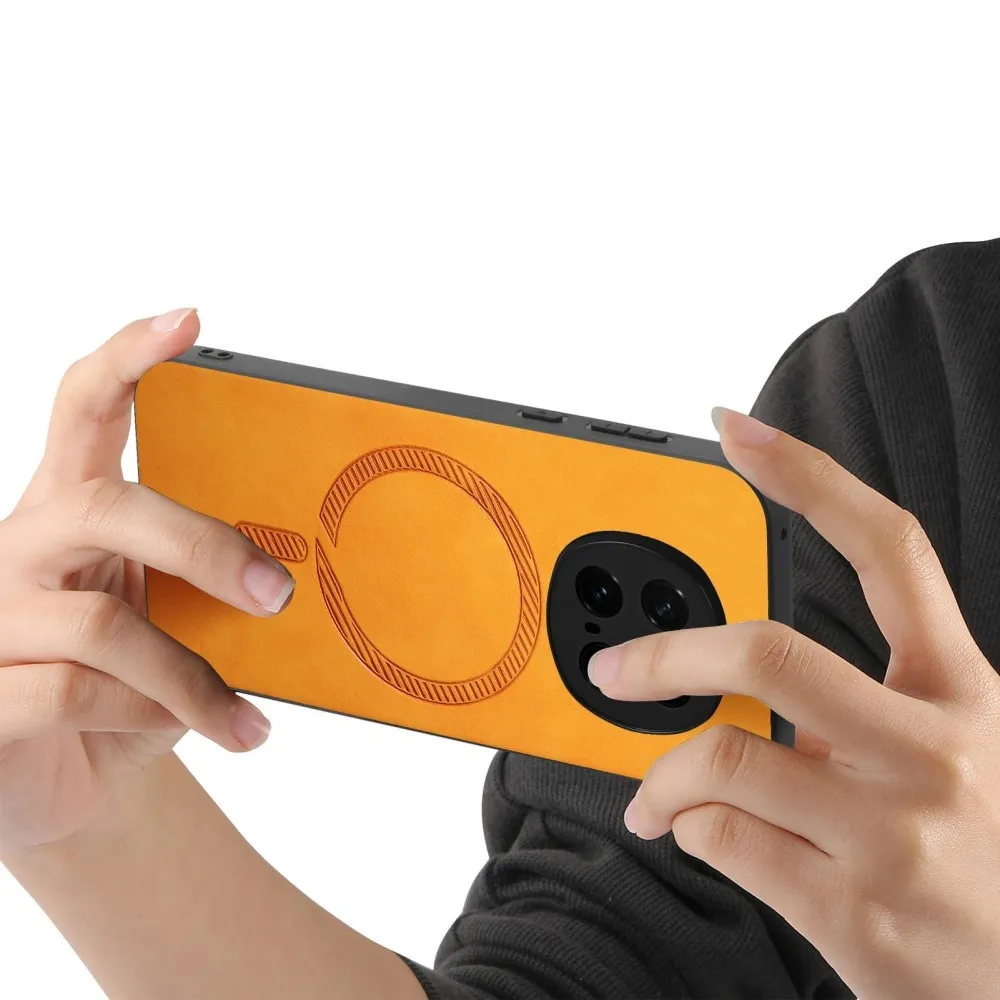 Skiny gél tok műbőrrel és MagSafe támogatással a Honor Magic 7 Pro 5G számára - Sárga