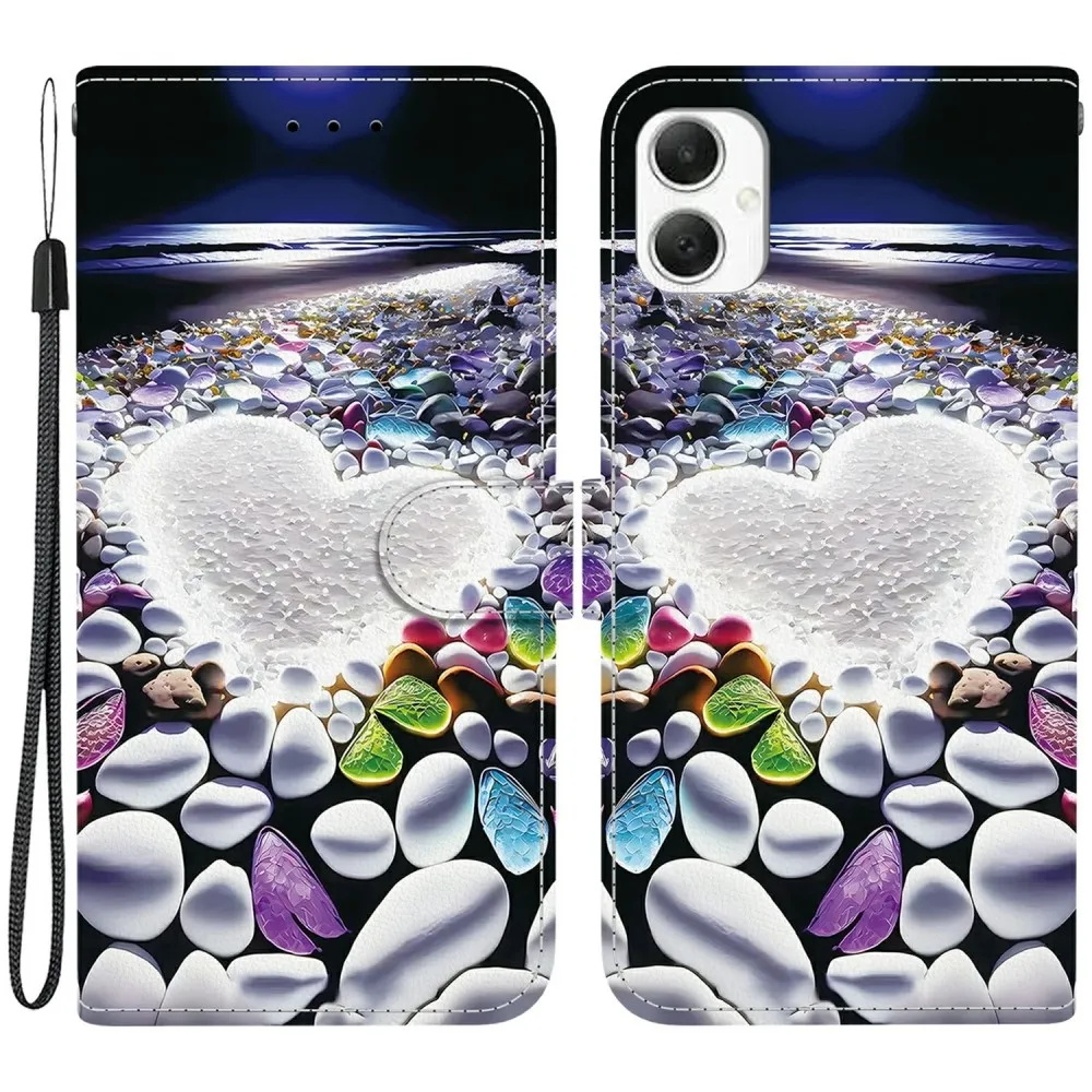 Sokoldalú pénztárca tok Samsung Galaxy A06 4G mobiltelefonhoz, szív motívummal és strasszkövekkel